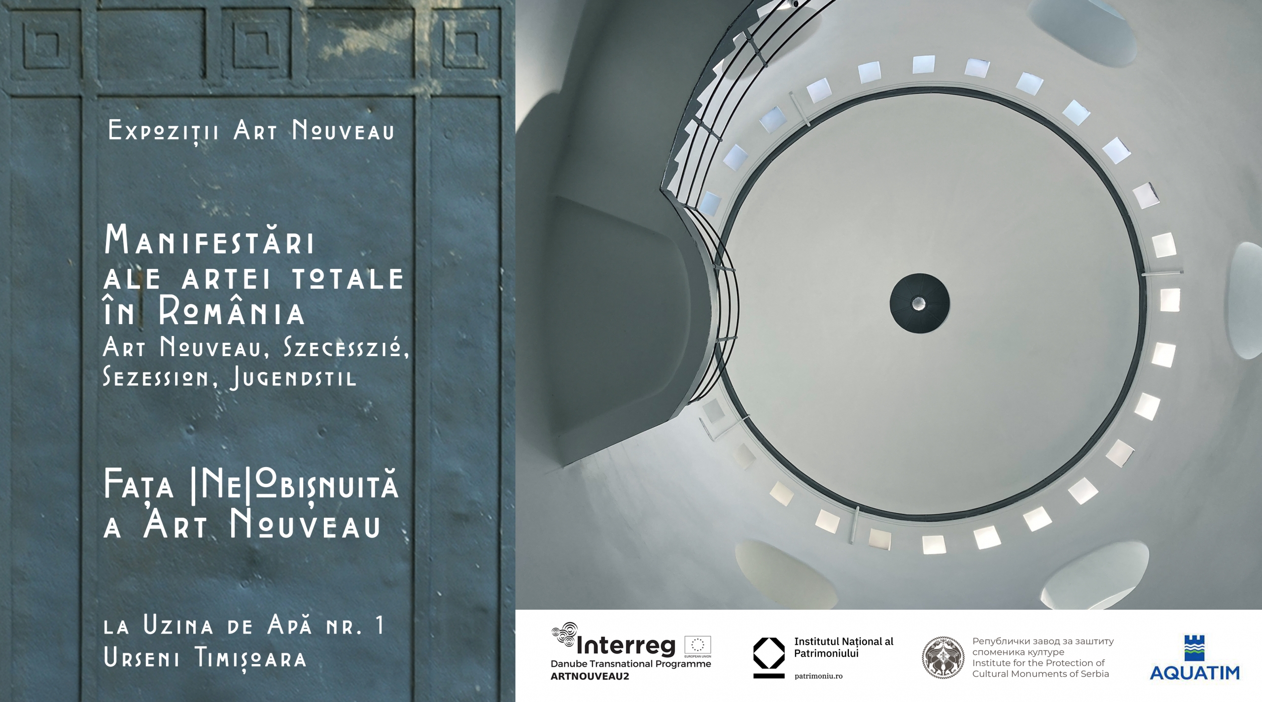 Două expoziții inedite, dedicate stilului Art Nouveau, sunt găzduite, în toamna aceasta, la Uzina de Apă nr. 1, din Timișoara, grație unui parteneriat între Institutul Național al Patrimoniului și Aquatim și proiectului cu finanțare europeană, ARTNOUVEAU2 – ce-și propune consolidarea identității culturale a regiunii Dunării prin promovarea patrimoniului comun Art Nouveau.