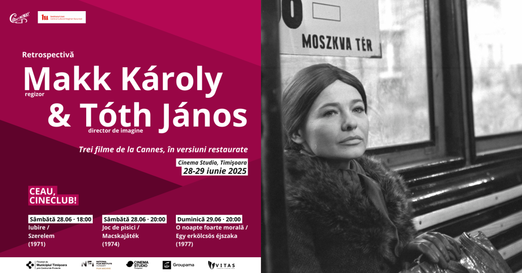Regizorul Károly Makk şi directorul de imagine János Tóth, doi dintre cei mai mari cineaşti din Ungaria, vor fi celebraţi printr-o retrospectivă organizată de Ceau, Cinema! şi Institutul Liszt – Centrul Cultural Maghiar, care va avea loc în 28 şi 29 iunie la Timişoara.