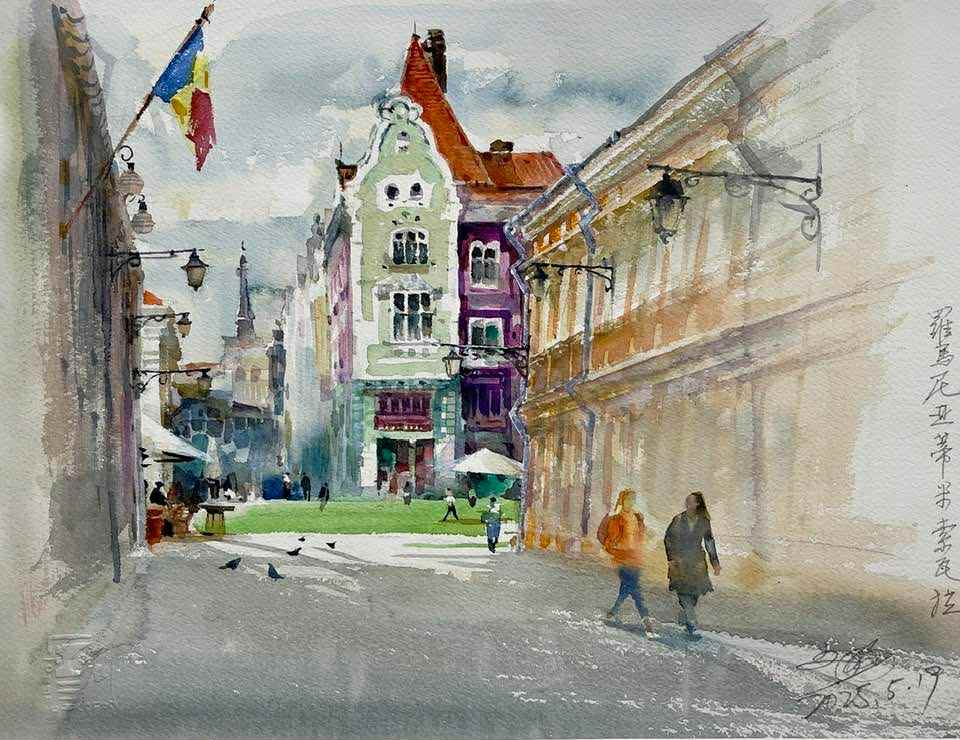 Acum revenim cu rezultatul final al prezenței artiștilor chinezi la Timișoara, lucrări în care Timișoara prinde viață în acuarelă și tuș, cu o sensibilitate rar întâlnită.