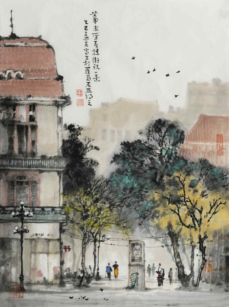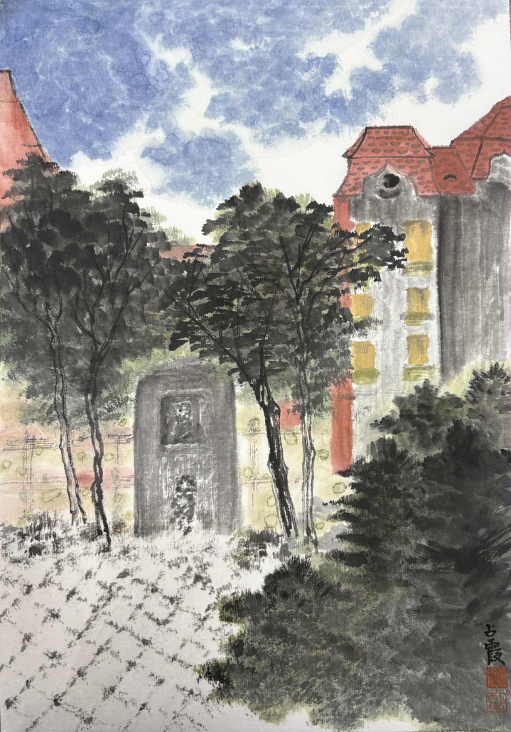 Fiecare pictură spune o poveste vizuală – fie că e vorba de clădirile istorice, umbrele copacilor sau momentele cotidiene, surprinse în stil tradițional chinezesc.