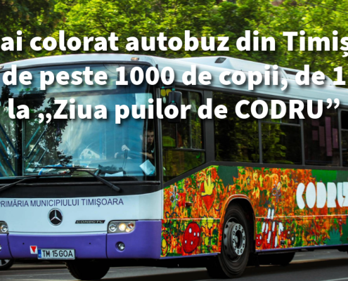 Cel mai colorat autobuz din Timișoara, pictat de peste 1000 de copii, de 1 Iunie, la „Ziua puilor de CODRU”